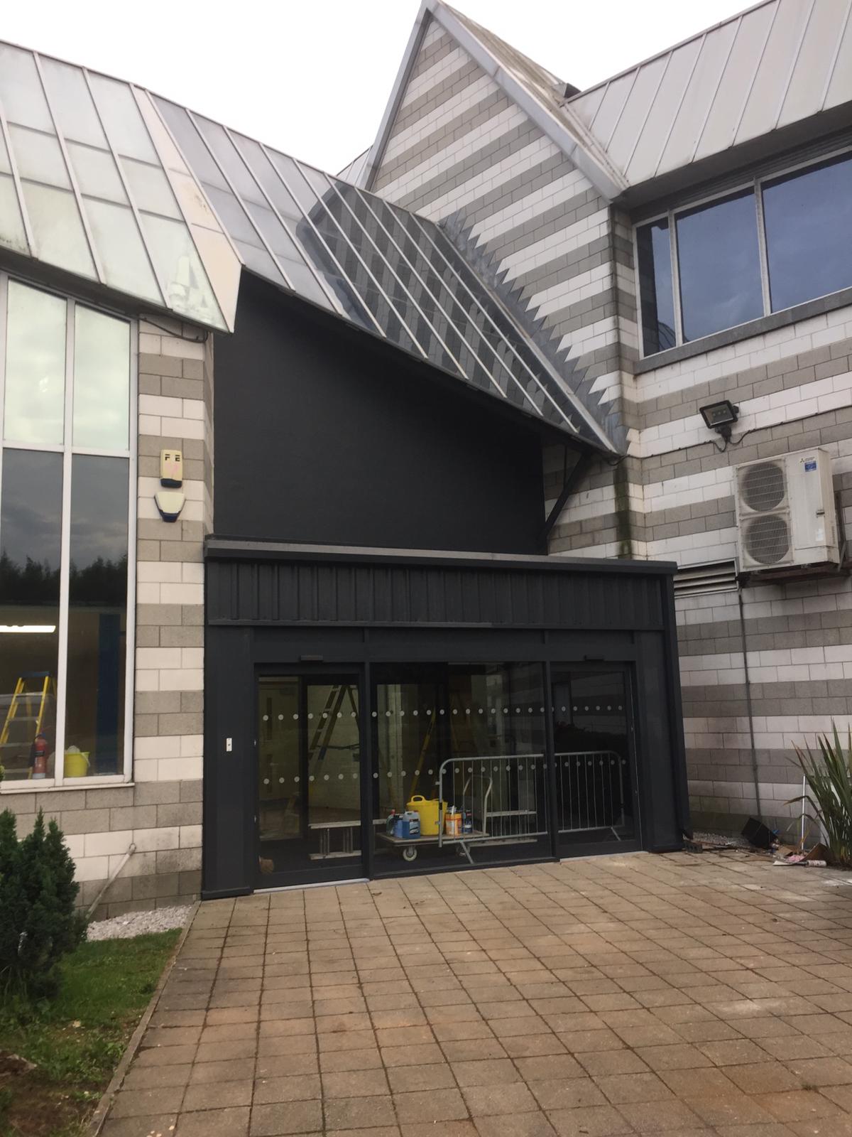 Here we have a selection of contracts that we have undertaken for our clients, here we have some examples of our cladding services on industrial buildings and incorporating cladded rooflines we also work with Fibre glass and EPDM rooflines. Commercial entrances for the retail and leisure industries by constructing apertures in brick or steel and installation of electronic sliding doors or manual door sets in a range of colours to suit the aesthetic. Within this we offer a complete a project management service where we oversee all aspects of your project and bring in other trades from our approved list of contractors to bring you a complete service from design to completion.