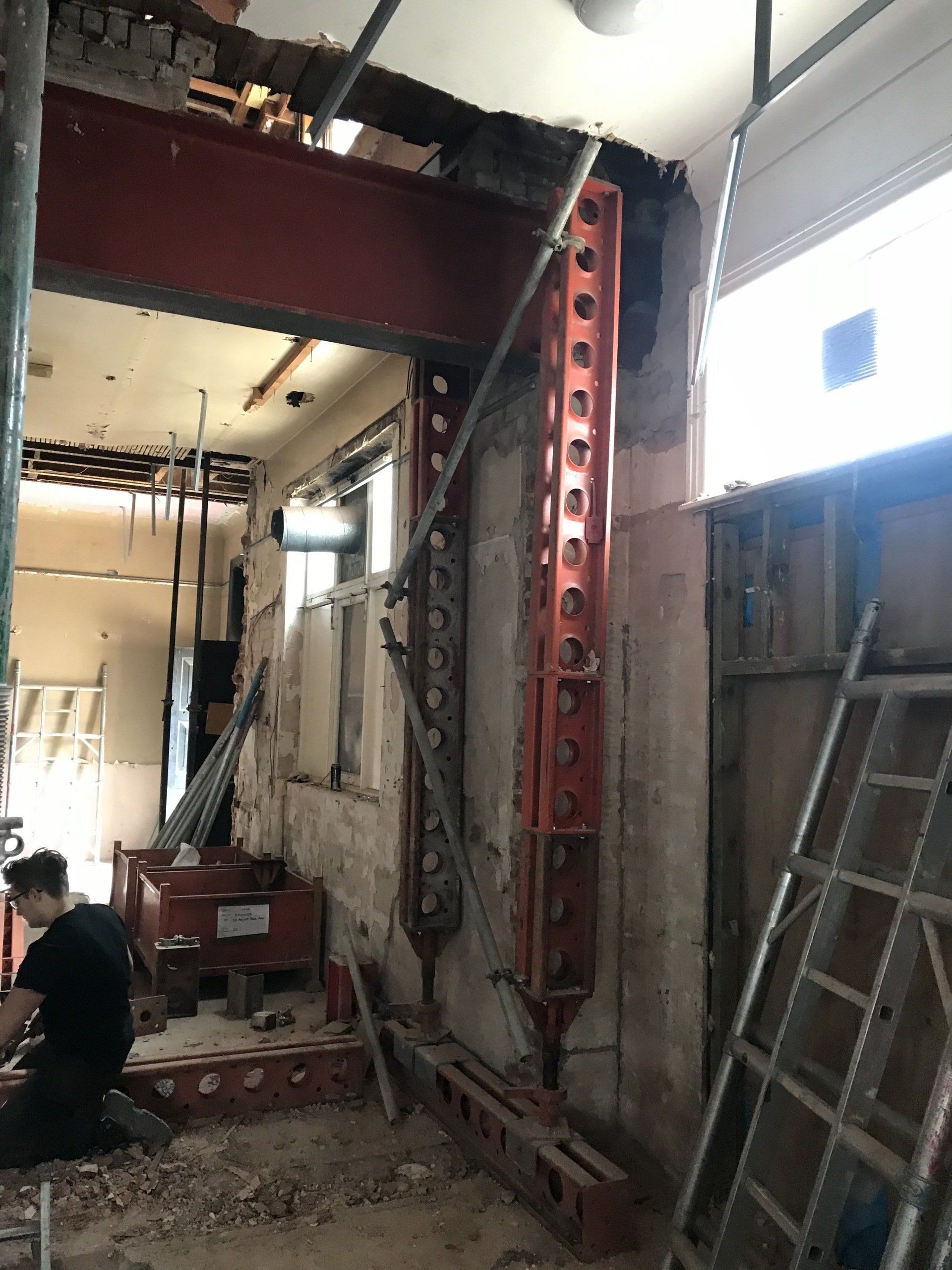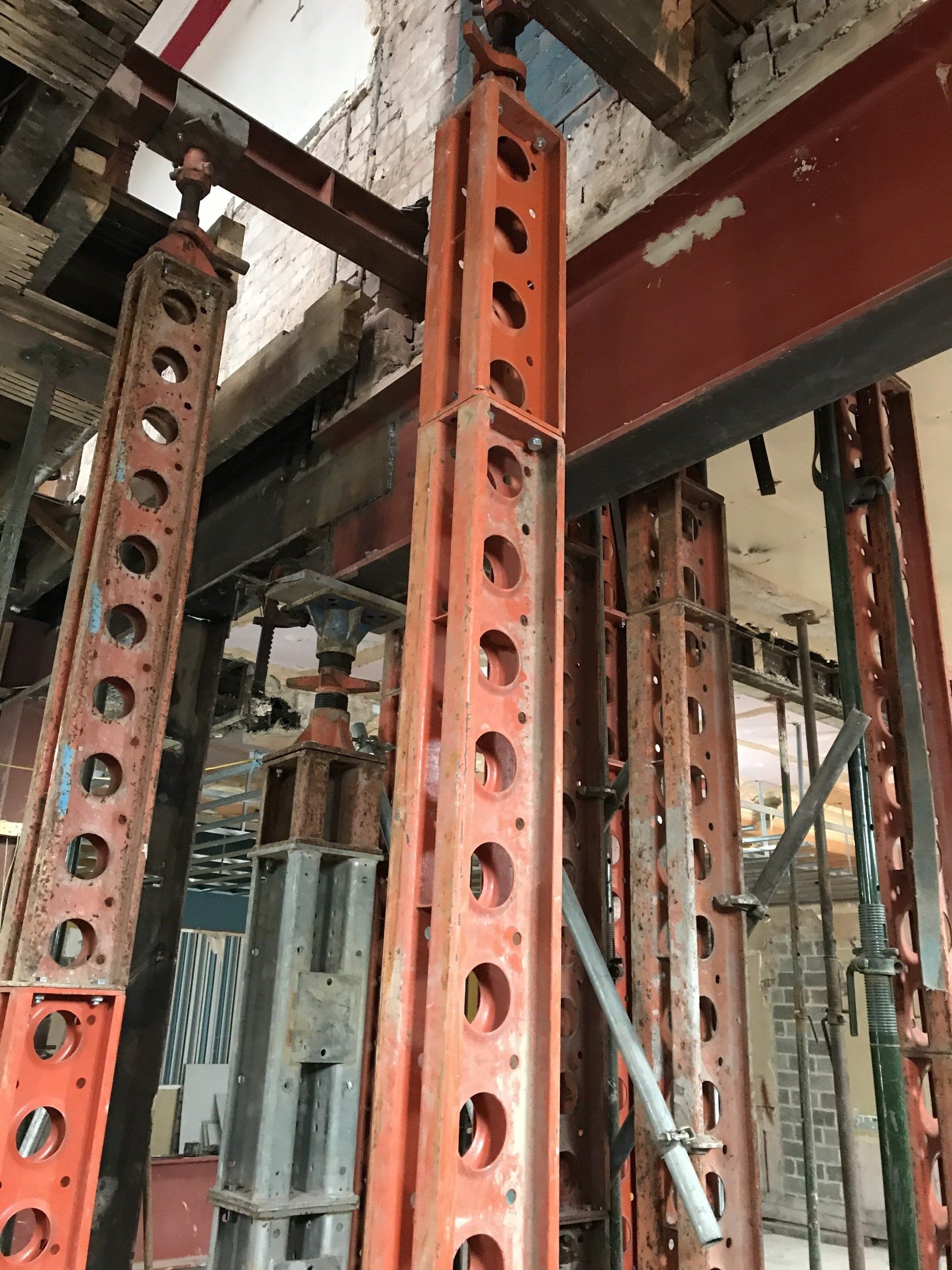 We work in conjunction with a national shoring company we can hire the shoring system bespoke to your requirements and we are trained to install these systems whilst structural work is being carried out internally, the most recent project was for a public house that has been developed into retail outlets and housing, unfortunately the building which is listed suffered structural damage whilst demolition work was being carried out, we installed the shoring system recommended by the shoring supplier to enable us to install structural steel beams and to carry out resolution work to make the building safe without loosing any of the original features that made the building special in the first place.